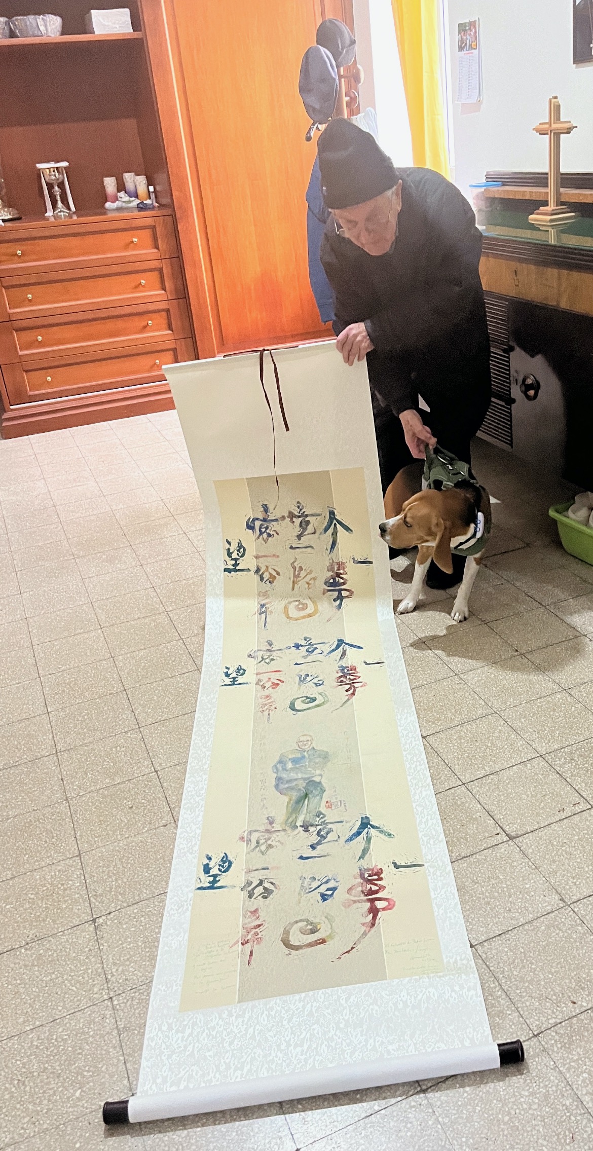 各位朋友,我很想和大家坦白分享,我也很相似這個人,我年青的時候、驕傲的時候,我覺得應該控制自己,不要被感覺控制自己,我記得如果我看見一些很特別的東西、未見過的事情,我要控制那種新鮮感、各種各樣的感覺,那份驚奇感也要控制。但是我要告訴大家,我也後悔自己做了這些事,浪費了很多自己的精力,浪費了。今年我85歲,我仍然覺得自己缺乏感覺、感受,我內在很多感覺,但是大家是否知道,我的眼淚到了我的眼裏面,但是出不到來。我聽到利瑪竇說:「利瑪竇離開家庭去讀書的時候說要做神父,他甚至離開意大利沒有和他父親說聲再見。」我也很相似利瑪竇。這個音樂劇為我非常之接近,我離開意大利的時候,我不單止不通知父母親,我有一個很慘的經驗,我離開屋企那天早上,我的母親很反對我離開意大利,她不反對我做神父,但是她反對我離開意大利。她挑戰我,早上我要離開,她很有計劃,站在我的面前,在門口開門,然後她在門口暈到地上,但是她暈低得很準確,整個門口被堵住,好像向我說,如果你要離開,你就要跨過我的身體。我跨過了,我是這樣的離開意大利。以後15年,我和媽媽沒有溝通,但是我媽媽是我最好的老師,甚至現在在我的分享中,我時常提及我媽媽,大家聽我的故事很多是我從媽媽和我相處之中拿出來的。我媽媽不懂簽名,寫自己的名字也不懂寫,但是她的智慧來自上天,是天主給她的恩賜,不是因為讀書, 我時常感謝天主給我一個不識字的媽媽,不需要用一萬元或者七千元參加一個課程學導教子女,然後在家中怎樣虐待自己的子女,[意思是指要求子女參加什麼興趣課程、什麼學習班、什麼運動等等]。媽媽沒有讀過聖經、福音,在家中我沒有見過福音、聖經,因為我媽媽不懂讀,但是我媽媽是我的聖經,這個人是我的福音,我在她身上學聖經,不是在修院上堂學那些解釋。