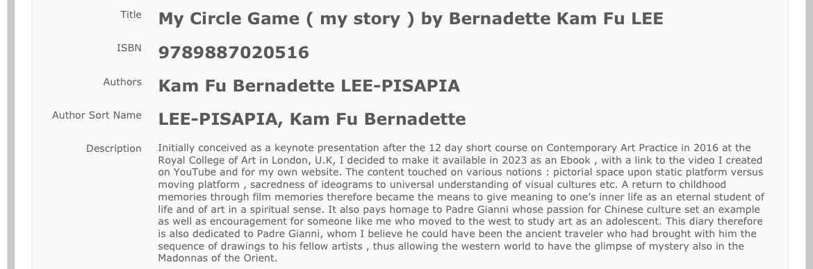 Bernadette Kam Fu LEE ( maiden name)(artist name)