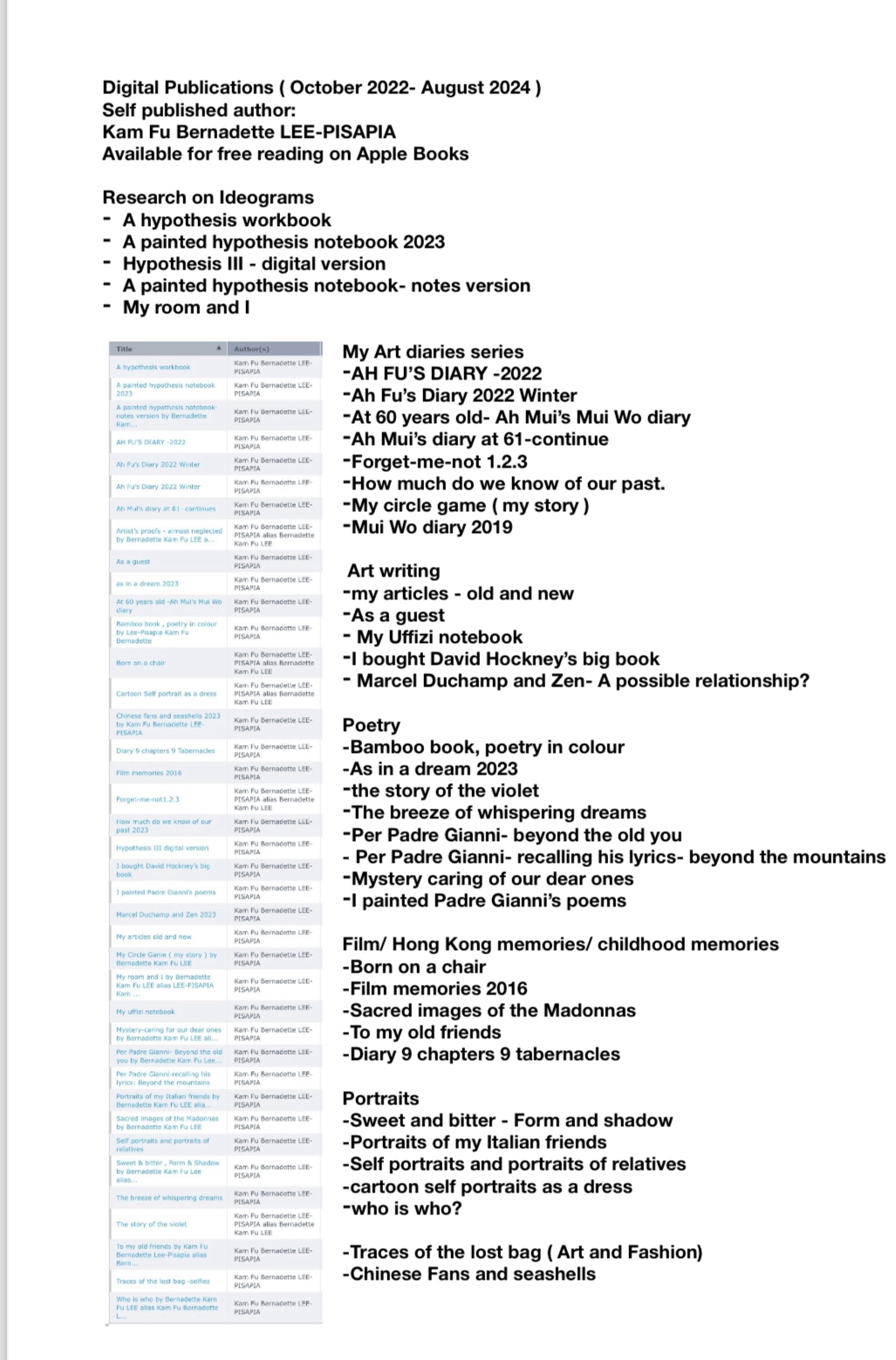 as well as Kam Fu Bernadette LEE-PISAPIA , A FINE ARTIST and a Self-published author