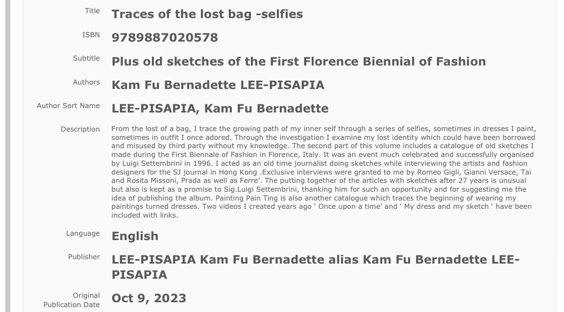 ( from 06/09/2023, the Italain format is officially transformed to LEE Kam Fu Bernadette coniugata PISAPIA . However, the fully extended writing of my hyphenated Last Name is still maintained as my Canadian and Hong Kong identity : Kam Fu Bernadette LEE-PISAPIA)